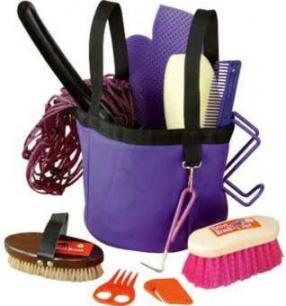 | horse equine agility grooming brushes bucket |