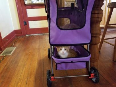 | cat kitten kitty in stroller shopping ride riding |