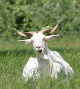 | Teasel, Spanish goat extraordinaire, laughs as she tells sheep jokes. |