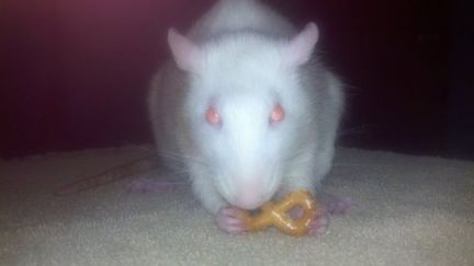 Noodles eating a pretzel