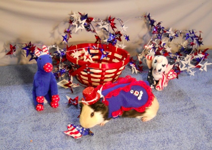 | damsel dress 4th July red white blue USA hat hats outfit guinea pig pigs cavy cavies outfits clothes costumes costume |