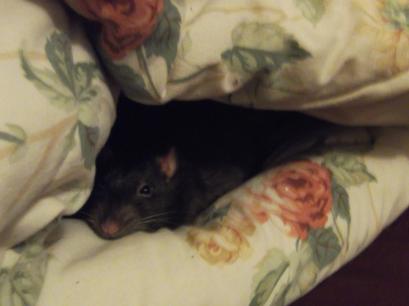 Comfy in his comforter-Scruggs got elf ears - 2012-10-31 23:21:25