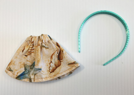 Gathered Skirt Hand Crafted using Sea Side Print Fabric! This one comes with a Sea Water Color Headband (Blythe Sized) to match.