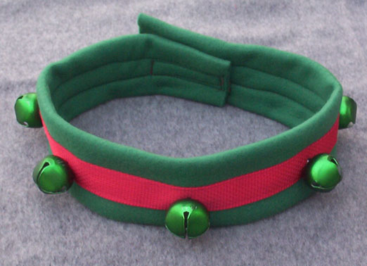 This collar has a nice jingle to it that will help find your dog in the dark and adds a festive atmosphere to your holiday parades and parties. This collar is held on by hook and loop so can be put on and taken off quickly but is not to be hooked to a leash. For dogs with a neck size of xx to xx inches (xx to xx centimeters).