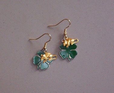 These are what I call cute and fun! They are made with one shamrock and one rattie charms each. They were made by me with gold toned fish hook type pieced earrings. The photo is not great, our camera is not great, but these are really nice earrings.