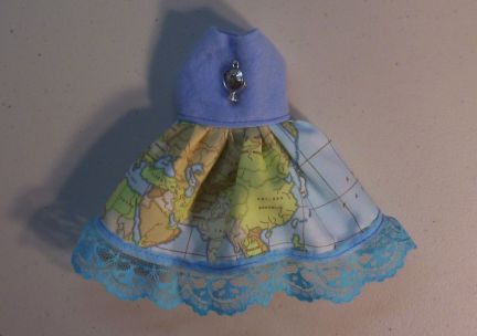 The waist measurement on this Dress is approx 6 1/2", it does have a bit of stretch in it, and the outfit is approx 6" from neck to tail.