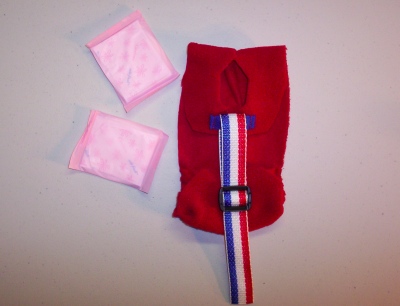 This one is for a Gosling that is past the hatchling size and is about 3 weeks old, it will fit your gosling for a few weeks. It is made to be RED/WHITE/BLUE and oh so cute. They grow so fasssssst! If it arrives and it would be a bit too big, wait a day or two (literally) and try it on your baby goose again. The Goose Diaper Holder comes to you with two Pantie Liners to get you started.